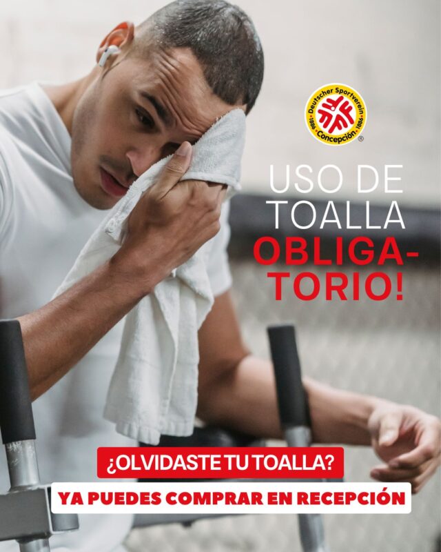 Con el objetivo de respetar la medida de uso obligatorio de toalla en sala de musculación, a partir de hoy nuestros socios podrán comprar toallas en recepción en caso de haberla olvidado en casa. Les recordamos que esta medida tiene múltiples beneficios, tanto para la higiene como para la experiencia general de los usuarios, entre ellos: