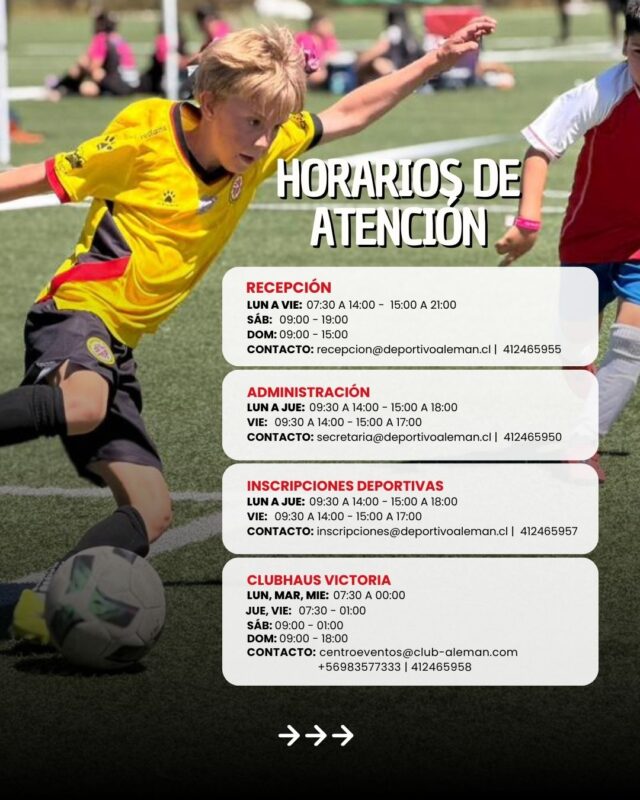 Con el comienzo de una nueva temporada, el Club Deportivo Alemán de Concepción informa a socios, deportistas y comunidad los horarios de funcionamiento y las normas de uso y convivencia vigentes para las distintas instalaciones.