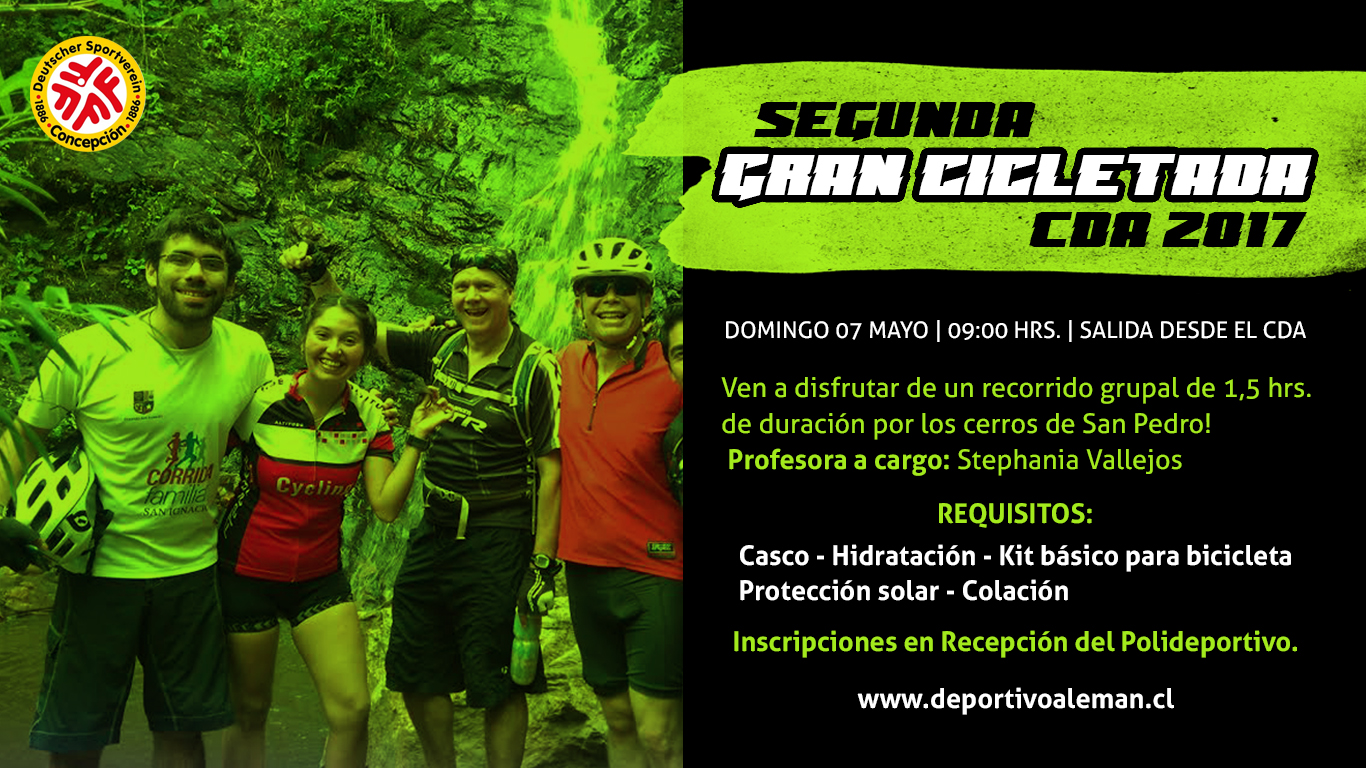 Debido a las lluvias del pasado fin de semana, la cicletada ha sido reprogramada para el próximo domingo 14 de mayo desde las 09:00 hrs.. La invitación es a participar de una