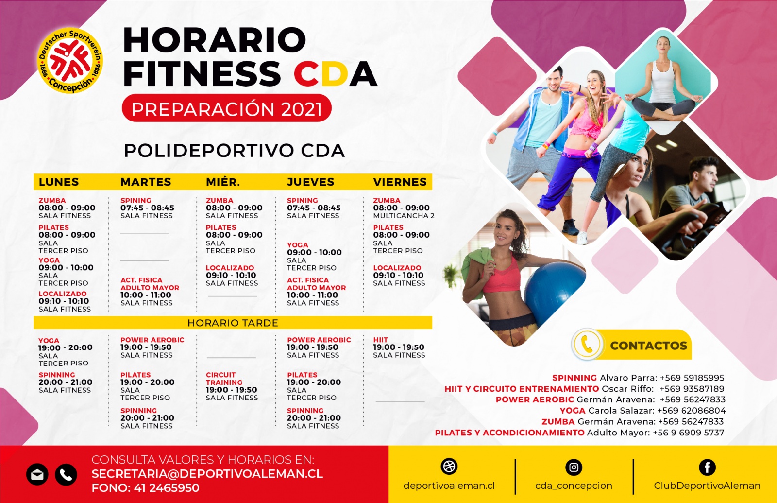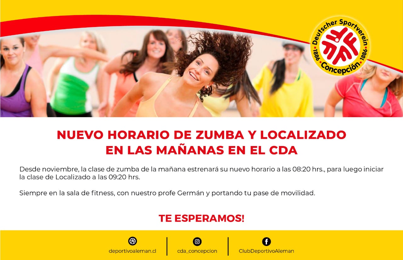 Desde noviembre, la clase de zumba de la mañana estrenó su nuevo horario a las 08:20 hrs., para luego iniciar la clase de Localizado a las 09:20 hrs. Siempre en