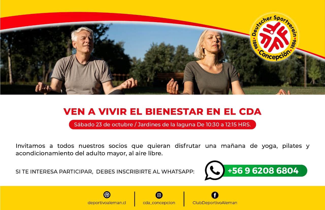 Este sábado 23 de octubre, desde las 10:30 hrs. viviremos una jornada de bienestar con la mejor vista a la laguna, en los jardines. En la actividad, exclusiva para nuestros