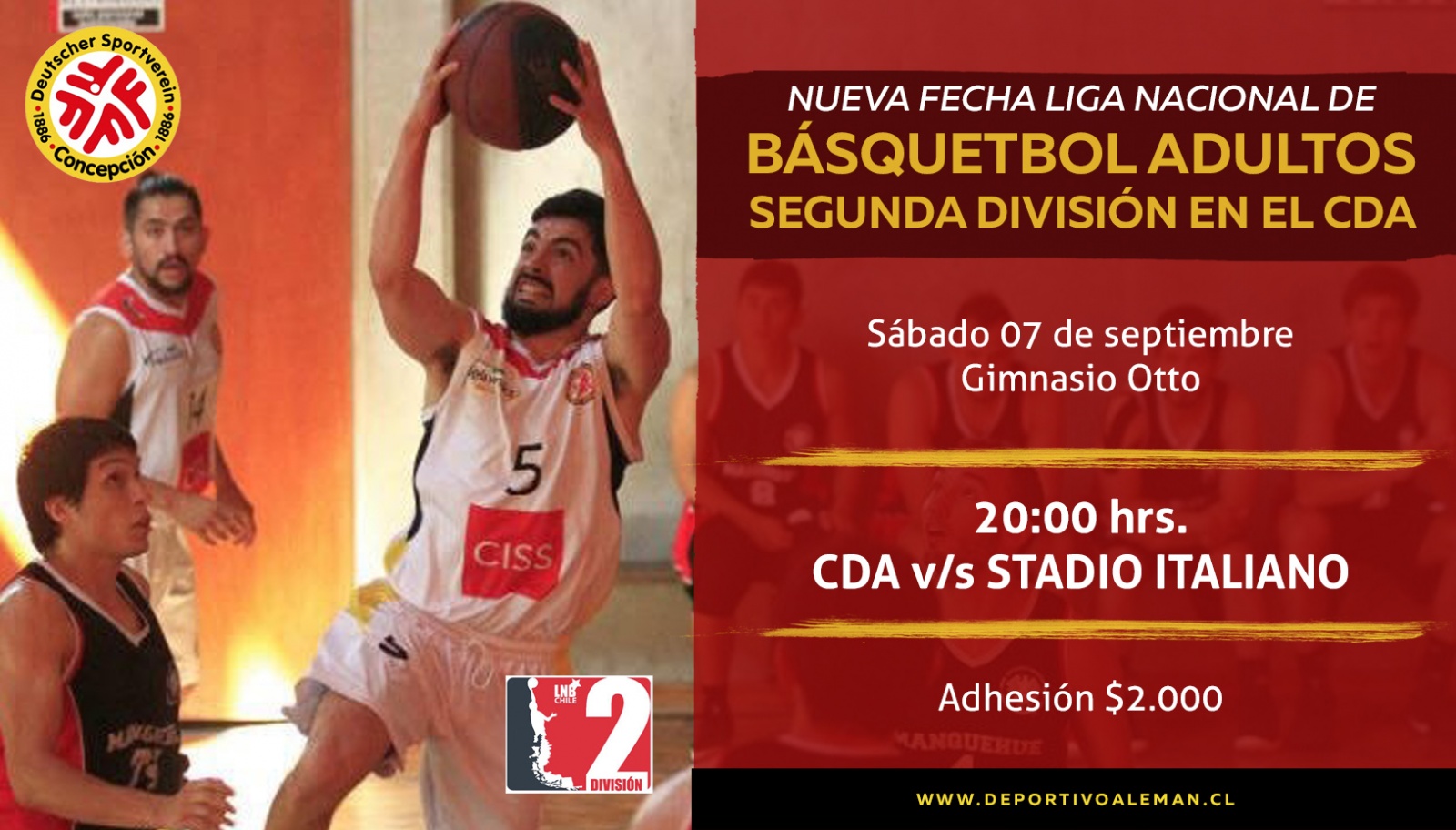 Este sábado 31 de agosto, nuestro Polideportivo será sede de una nueva fecha de la Liga Nacional de Básquetbol Adultos. En la oportunidad, los representantes del CDA se medirán ante