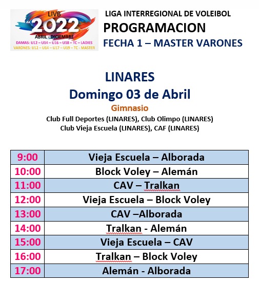 Este domingo 3 de abril juega en Linares Voleibol CDA para la Liga interregional de Master Varones. ¡Les deseamos un buen viaje y mucho éxito!